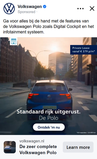 Het is een CXO best practice om een CTA in een advertentie te zetten, ook als je hier eigenlijk niet op kan klikken, zoals op Social het geval is. In principe kan je namelijk op de hele video of afbeelding klikken om naar de landingspagina toe te gaan.